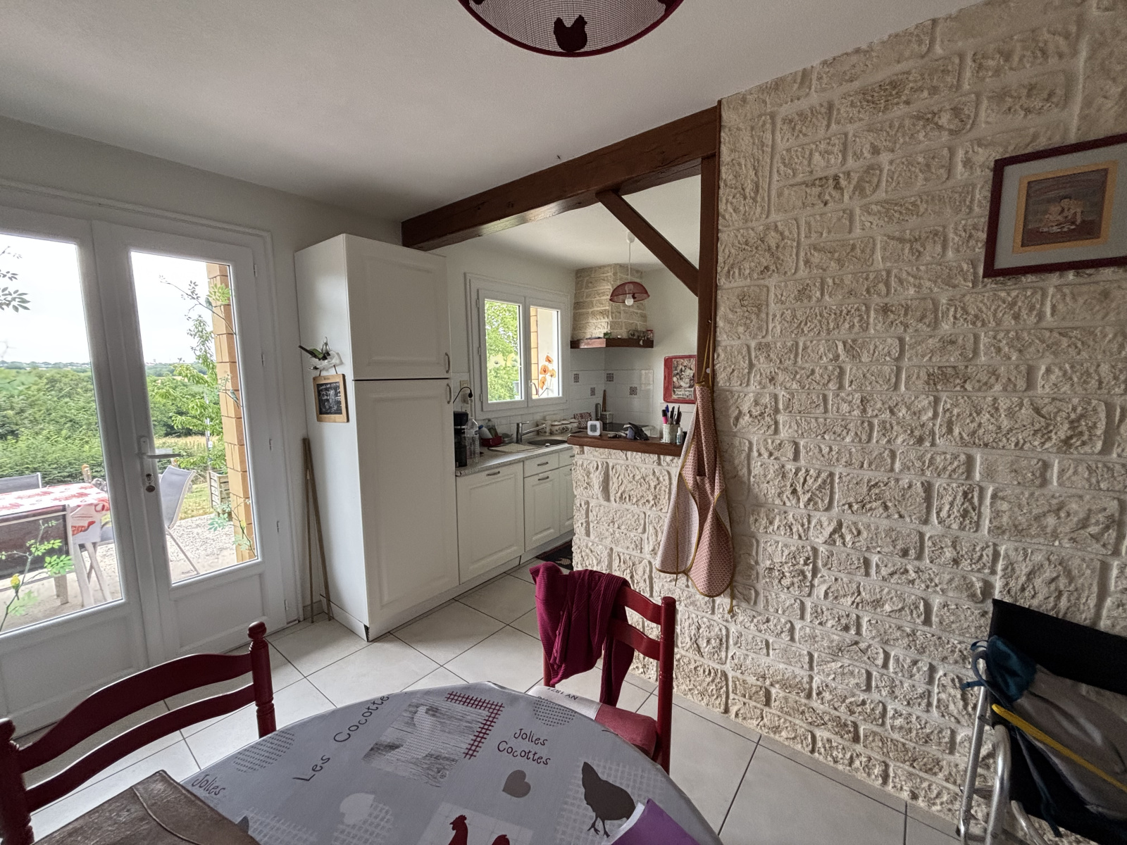 Cuisine indépendante, salon séjour, 3 chambres, salle d'eau (récemment refaite), wc, grande buanderie.