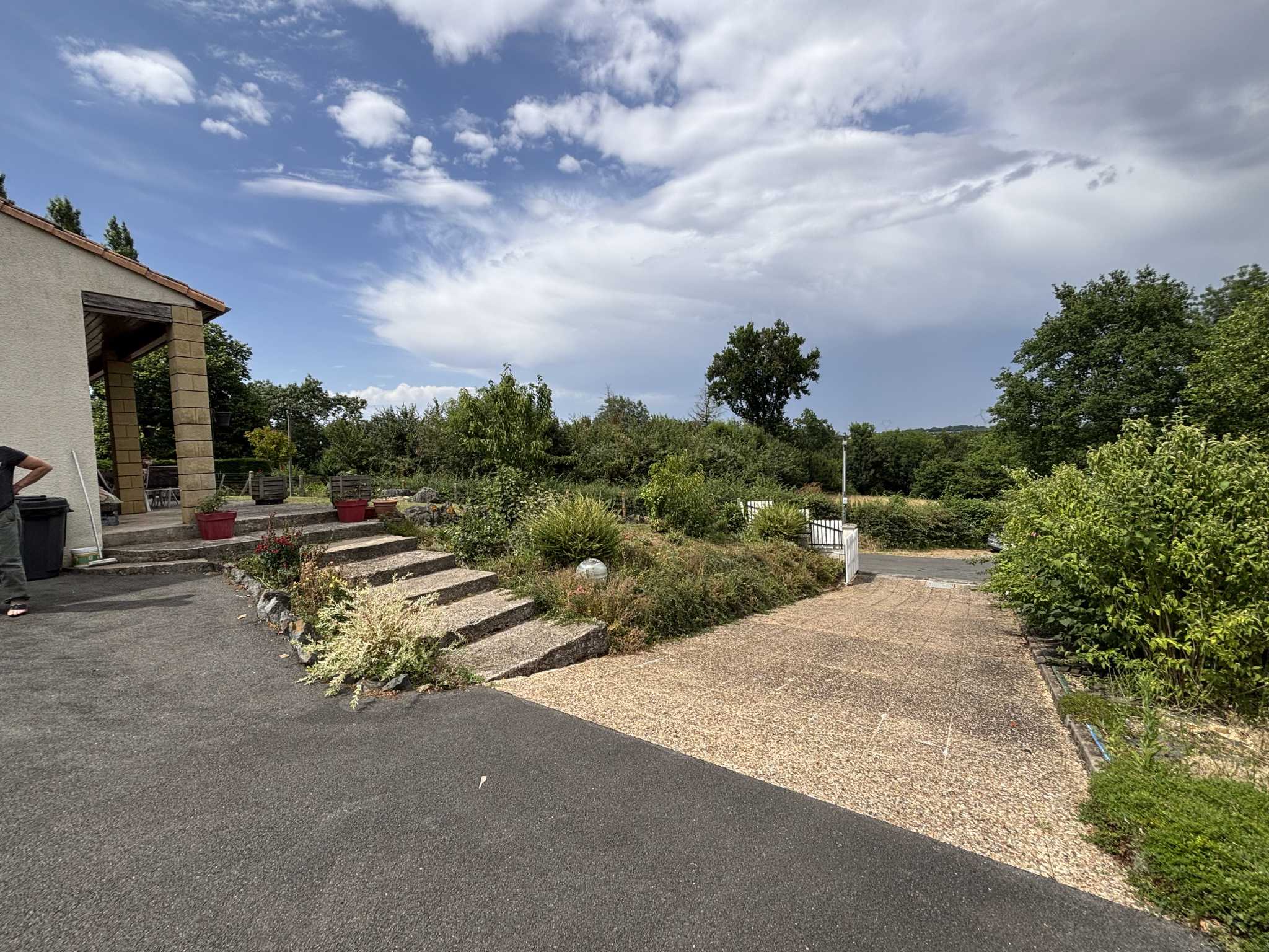 Terrasses devant et derrière la maison. Grand garage indépendant avec double porte automatique sectionnelle.