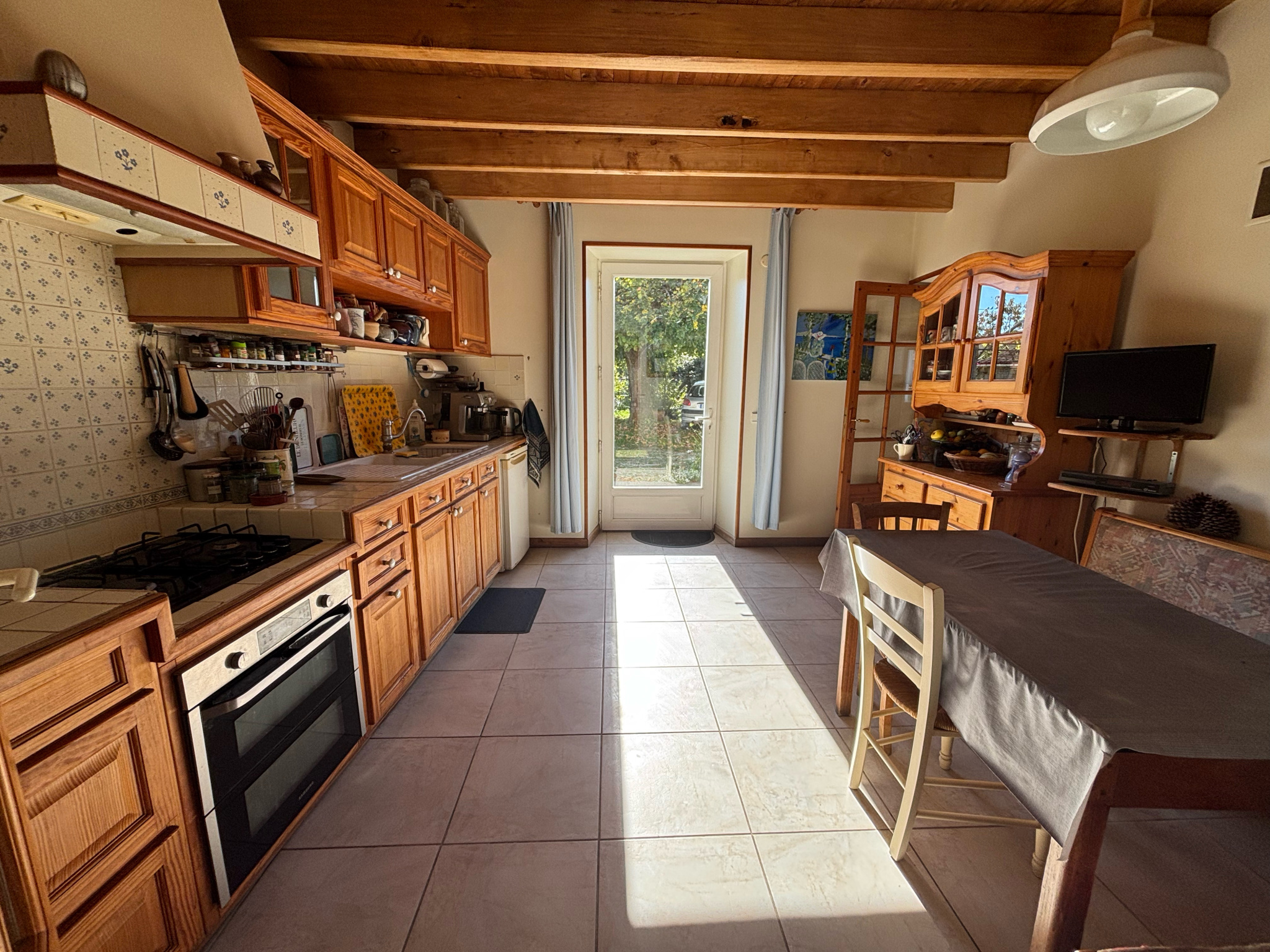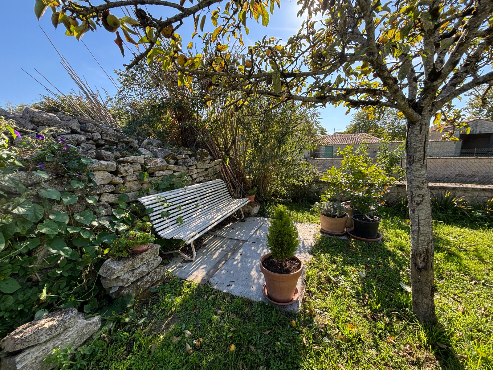 Les extérieurs sont aménagés avec goût et le jardin est très agréable et peut permettre à une famille de subvenir à une bonne partie de ses besoins alimentaires. Une multitude d'espèces végétales ont été semées ou plantées et raviront ceux qui aiment et respectent la nature (propriété conduite en agriculture biologique depuis 30 ans).