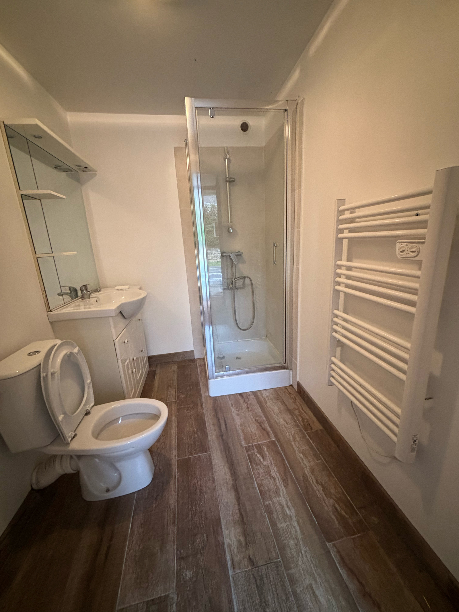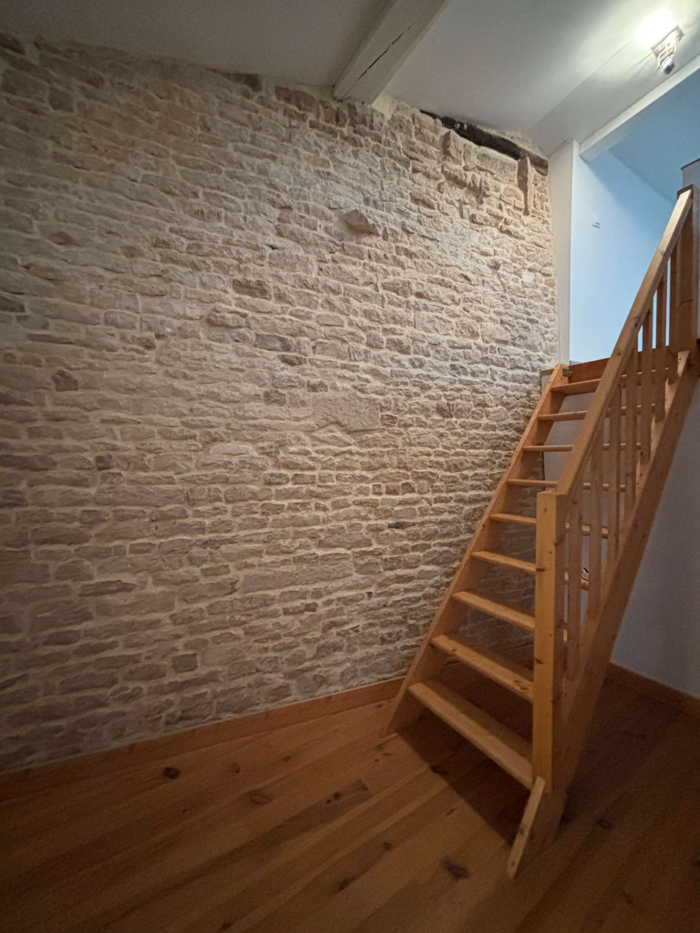Au 1er étage: Pallier, 2 chambres, grande pièce, salle de bain, WC indépendant