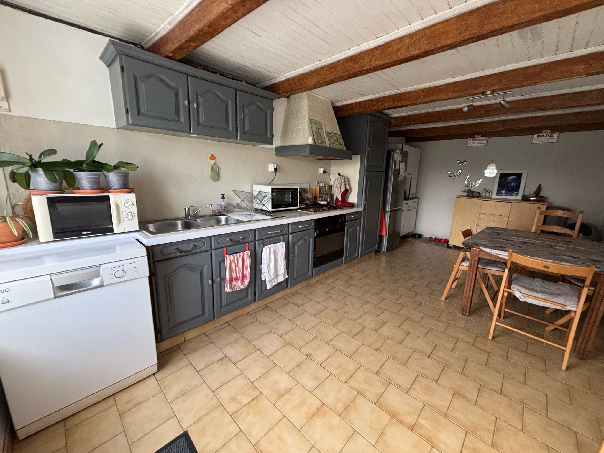 Au RDC de la maison d'habitation, vous trouverez entrée/cellier, Salle à manger, Cuisine, salle d'eau, WC .A l'étage, 3 chambres.